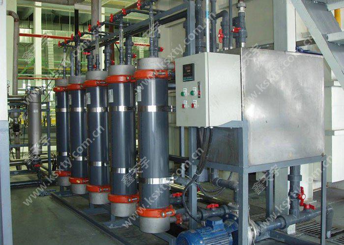 循環(huán)攪拌系統(tǒng)分內(nèi)、外兩部分循環(huán)。作用是保證整個電泳槽內(nèi)漆液成分和溫度的均勻,防止漆液顏料沉淀。