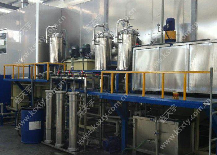 一般電泳涂裝的溫度在20~30度,在氣溫較高或連續(xù)生產(chǎn)時漆液溫度會明顯上升,為保證漆膜的質(zhì)量,須對漆液進(jìn)行冷卻,可采用循環(huán)地下水冷卻,冷卻塔冷卻或冷凍機強制冷卻。在氣候寒冷的冬季則需要升溫加熱熱交換器有夾套、蛇形管、平板式及列管式多種,險夾套結(jié)構(gòu)外,其他的熱交換器均可借助外循環(huán)系統(tǒng)的循環(huán)泵,使漆液通過熱交換器進(jìn)行冷卻或加熱。