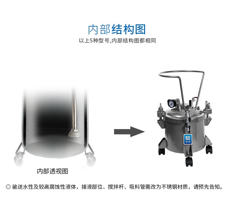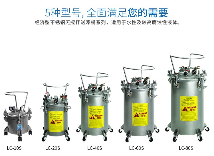 不銹鋼經(jīng)濟無攪拌送漆桶,送漆桶是高壓噴涂工藝中必須的裝置,該設(shè)備具有耐高壓的特性。不銹鋼適用于水性、脫模劑送、膠水輸送、涂料輸送和其他常規(guī)液體輸送等。