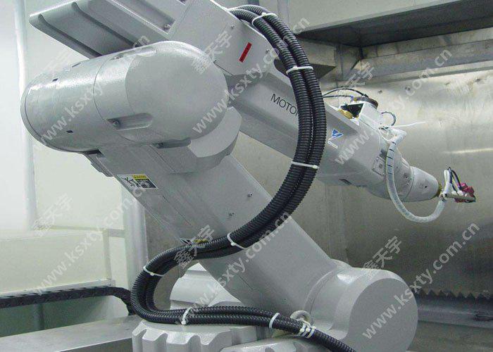 噴涂機器人又叫噴漆機器人(spray painting robot), 是可進行自動噴漆或噴涂其他涂料的工業機器人。噴漆機器人主要由機器人本體、計算機和相應的控制系統組成,液壓驅動的噴漆機器人還包括液壓油源,如油泵、油箱和電機等。多采用5或6自由度關節式結構,手臂有較大的運動空間,并可做復雜的軌跡運動,其腕部一般有2~3個自由度,可靈活運動。較先進的噴漆機器人腕部采用柔性手腕,既可向各個方向彎曲,又可轉動,其動作類似人的手腕,能方便地通過較小的孔伸入工件內部,噴涂其內表面。噴漆機器人一般采用液壓驅動,具有動作速度快、防爆性能好等特點,可通過手把手示教或點位示數來實現示教。噴漆機器人廣泛用于汽車、儀表、電器、搪瓷等工藝生產部門。
